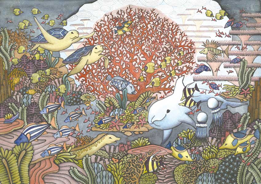 珊瑚のラグーン 珊瑚のラグーン (2010) 420×594 キャンバス 墨 アクリル絵具 Ragoon of Coral (2010) 420×594 Canvas, Ink, Acrylic Color